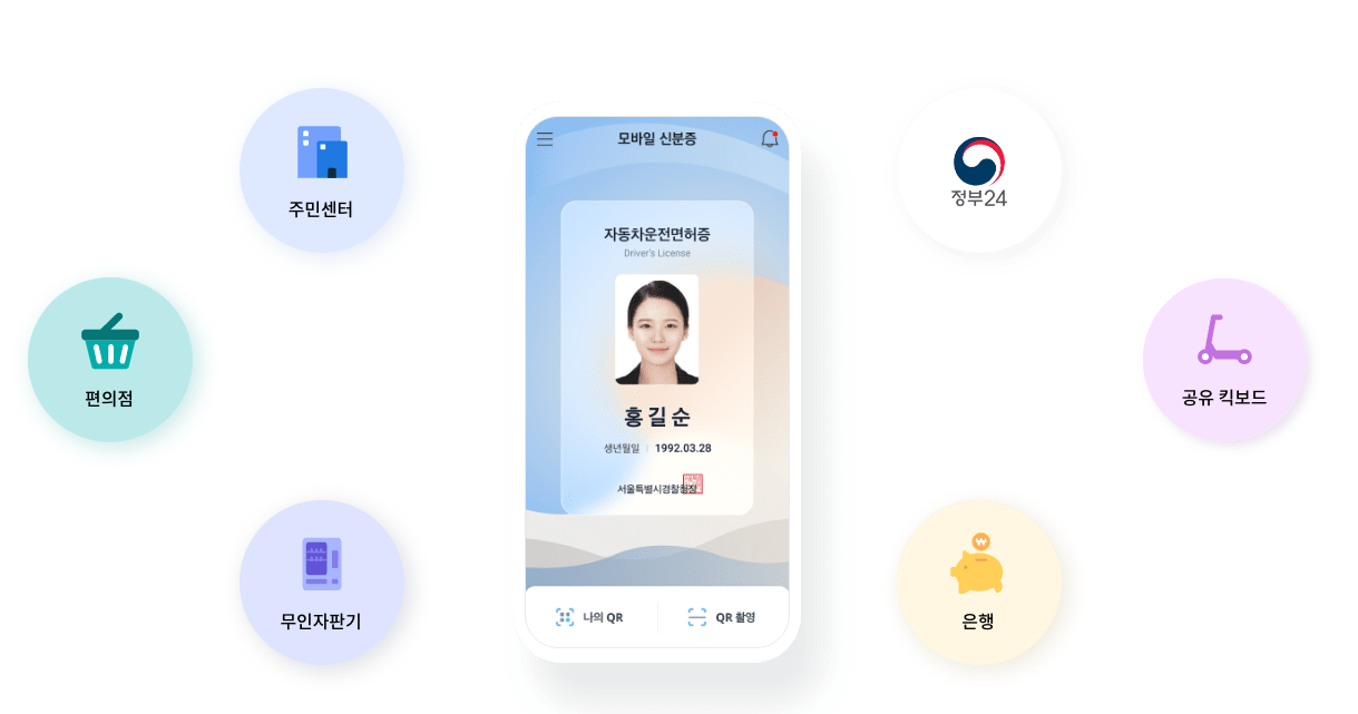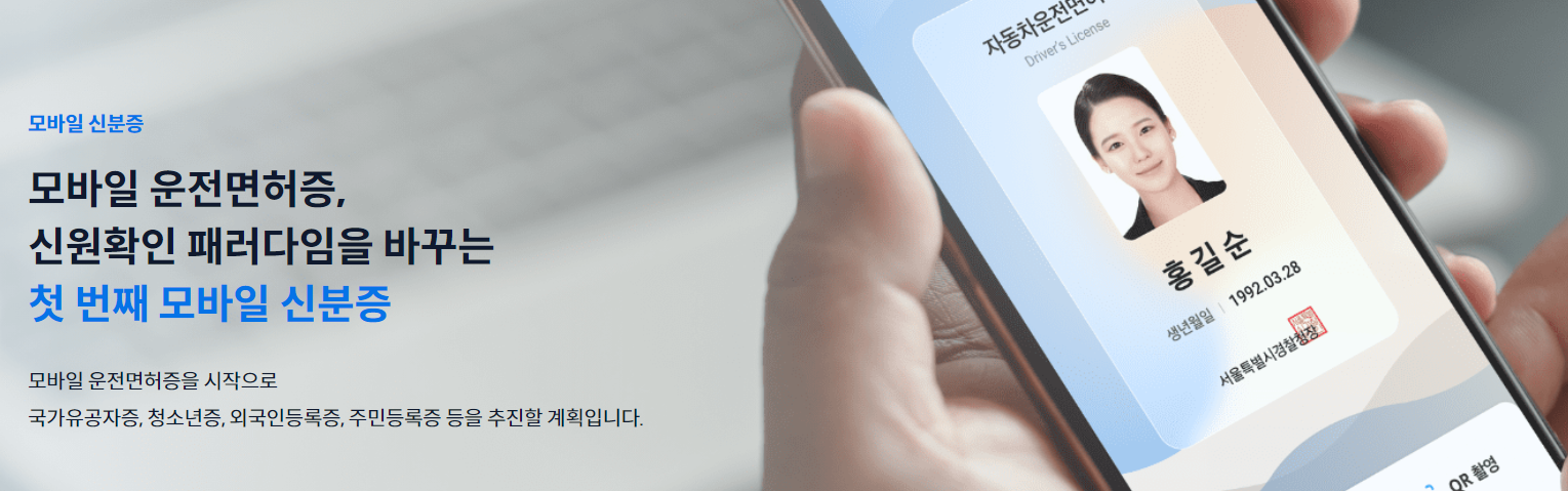 모바일 면허증(신분증)은 개인 스마트폰에 저장하여 편리하게 사용할 수 있는 신분증으로 블록체인 기반의 기술로 정보 보안에 안정성을 강화 했다고 합니다.